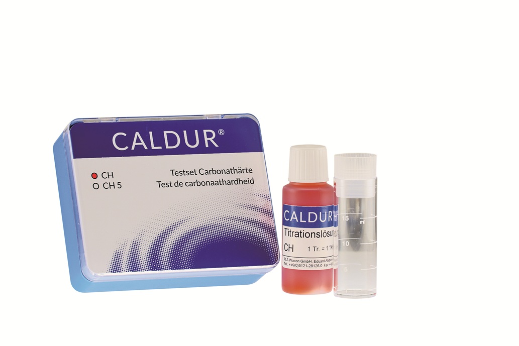 Mit einem CALDUR® Testset Carbonathärte CH 5 können Sie 100 Messungen bei 5 °dH durchführen.